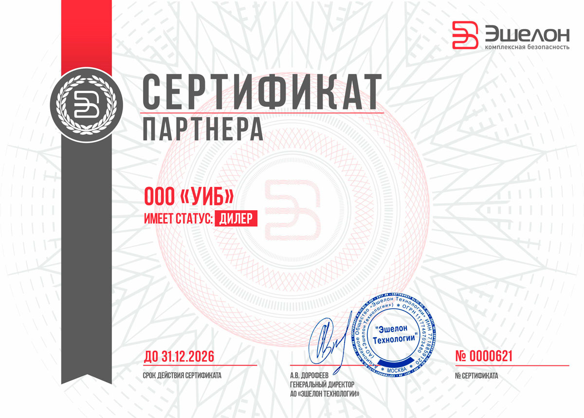 Сертификат партнёра «Эшелон».