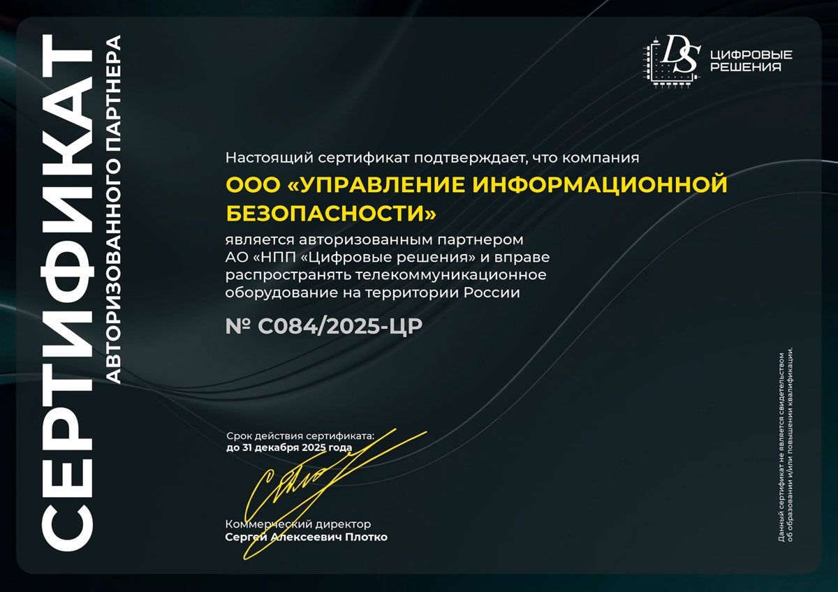 Сертификат партнёра «Цифровые решения»