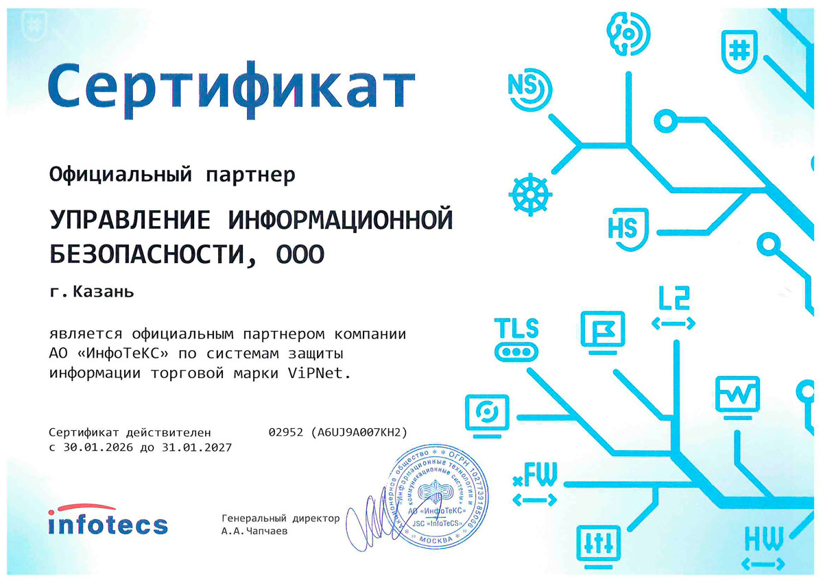 Сертификат партнёра «Код безопасности»
