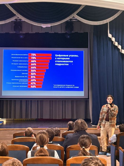 В ходе лекции особое внимание было уделено наиболее актуальным рискам для учеников: распространению недостоверной информации, мошенническим схемам, взлому аккаунтов и утечке персональных данных. Участники разобрали практические способы проверки источников, принципы формирования цифрового следа, правила создания надёжных паролей и меры по защите личных аккаунтов.