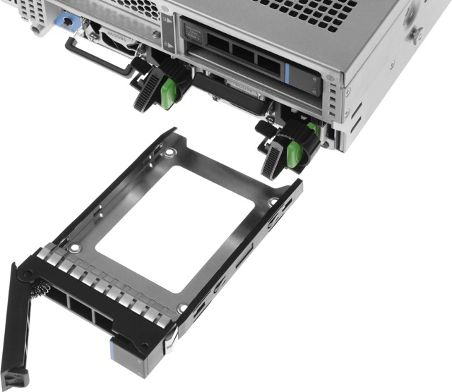 Форм-фактор сервера — 2U Rack-dense. Корпус предназначен для установки в стандартные стойки и поставляется с рельсами для удобного монтажа. Компактные размеры, высокая плотность компонентов и продуманная вентиляция делают систему удобной для эксплуатации в условиях современного дата-центра.