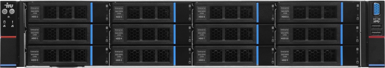 IRU Rock g2212ig4 поддерживает до 12 накопителей формата 3.5" и до 14 накопителей формата 2.5". В базовой конфигурации предусмотрена корзина для 12 дисков SAS/SATA 2.5/3.5 с активным backplane, а также корзина для 2 системных дисков SATA 2.5. RAID-контроллер LSI 9460-8i с поддержкой RAID 0/1/5/6/10/50/60 и батареей резервного питания гарантирует отказоустойчивость и высокую скорость работы с данными.