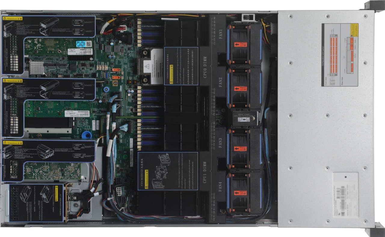 - Два блока питания по 1600 Вт с горячей заменой для непрерывной работы сервера.