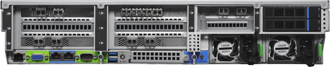 - Компактный корпус Rack-dense 2U с рельсами для удобного монтажа и обслуживания.